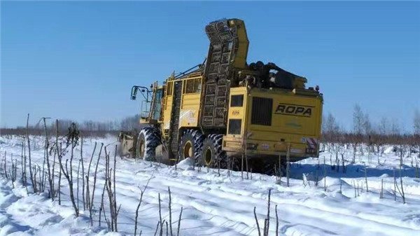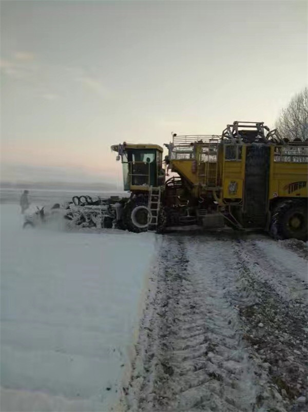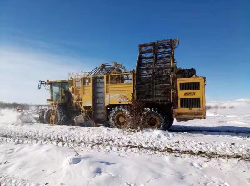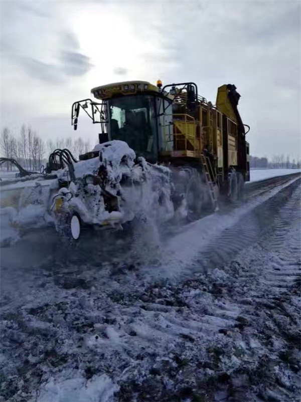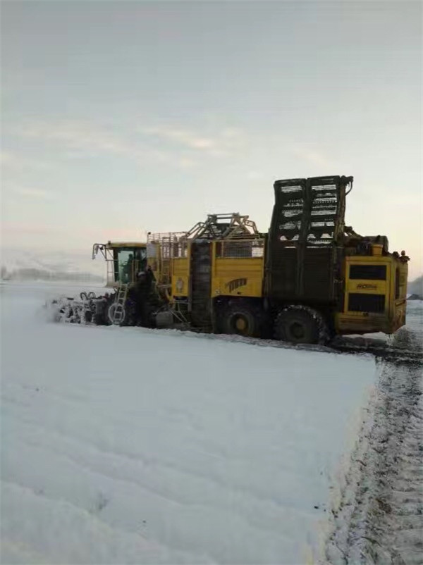 所幸,我們公司引進(jìn)的德國(guó)羅霸(ropa)甜菜收獲機(jī)可以在這種環(huán)境中作業(yè),是可以在新疆冰雪中作業(yè)的甜菜機(jī)械。這款德國(guó)羅霸歐洲猛虎甜菜收獲機(jī)可以在零下24度,積雪30厘米以上甚至40厘米的環(huán)境下采收甜菜。而這里真的有零下24度。